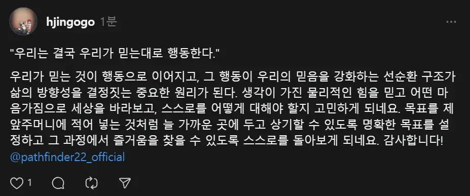 내가 지향하는 상태를 기반으로 펼쳐가는 여정이라는 점에서 흥미롭고 특별했어요.